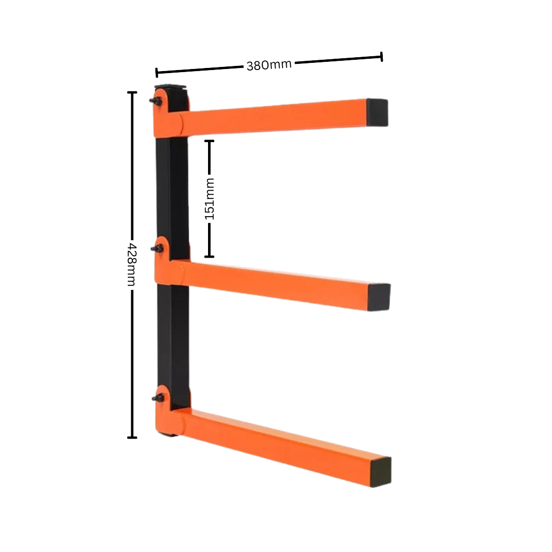 Built from solid metal iron, the LoadBar Wall Rack is designed for heavy-duty indoor or outdoor storage of firewood, long materials, and bulky jobsite gear. Its reinforced arms provide strong support while keeping timber, pipes, and supplies off the ground and neatly organised. The bright orange finish adds visibility in sheds and workshops, while the wall-mounted design saves valuable floor space. Ideal for tradies who want a tough, reliable storage system that handles real workloads.