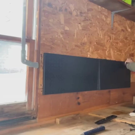 A long-format heavy-duty metal pegboard panel built for tradie-grade storage. Made from thick iron with a powder-coated finish, it mounts securely to walls and provides strong, rigid support for hooks, tools and workshop accessories. Extra width makes it perfect for organising frequently-used gear above benches, in garages, work vans and tool sheds.